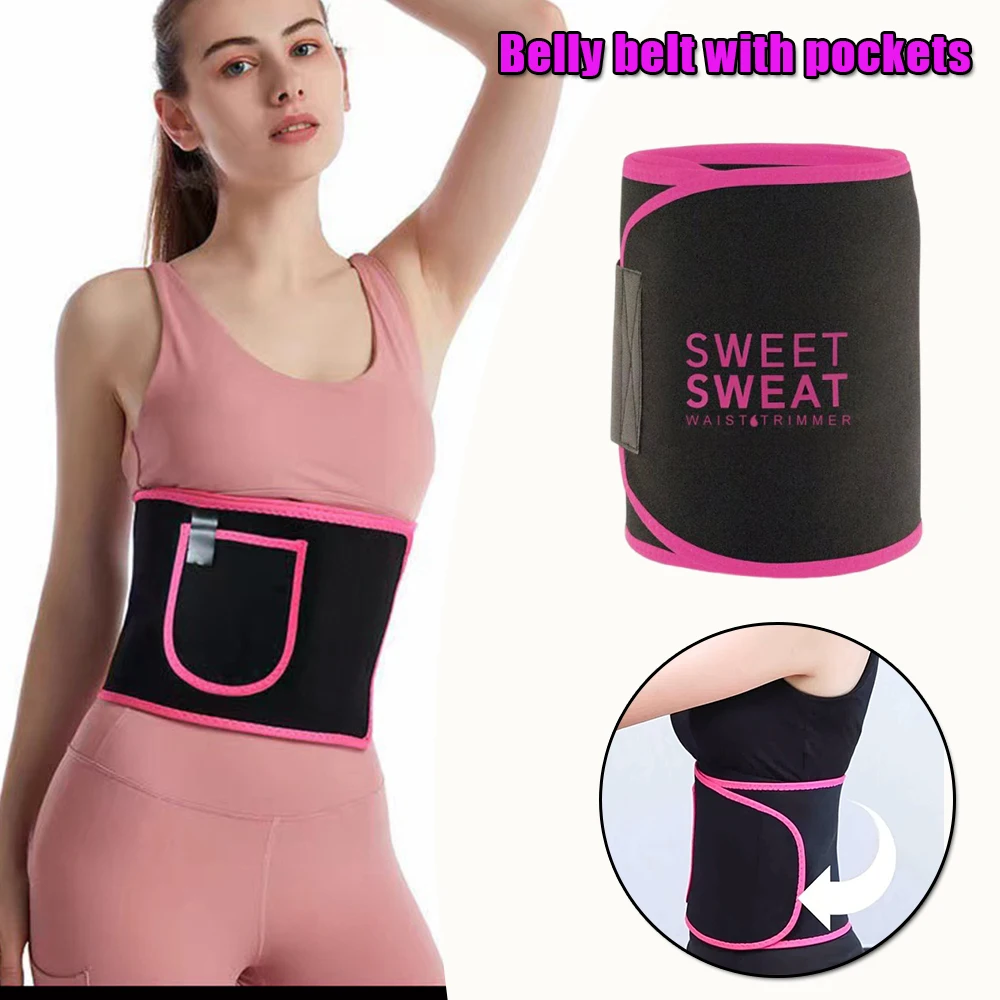 Adjustable Sauna Belt with Pocket High Stretchy Silver Fabric Sweating Waist Trainer Slimming Belly Weight Loss Belts for Women